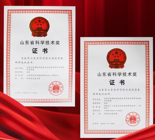 由山東省科學(xué)院激光研究所、中國(guó)石油化工股份有限公司青島安全工程研究院、山東東宏管業(yè)股份有限公司、山東微感光電子有限公司、濟(jì)寧四和供熱有限公司共同完成的“大型流體儲(chǔ)運(yùn)設(shè)施安全無(wú)源監(jiān)測(cè)預(yù)警關(guān)鍵技術(shù)與裝備”項(xiàng)目榮獲山東省科學(xué)技術(shù)獎(jiǎng)二等獎(jiǎng),公司排名第三位。總裁倪奉堯作為項(xiàng)目主要完成人受到山東省人民政府表彰。