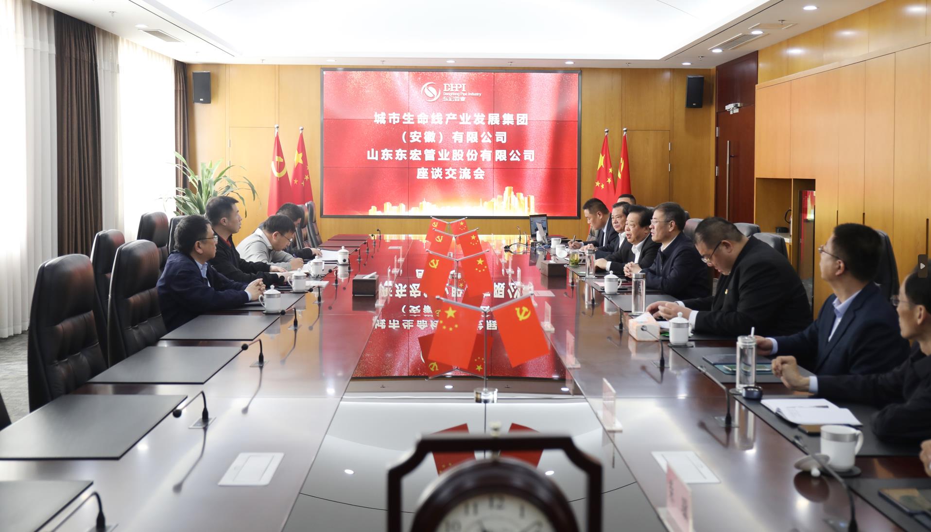 4月12日上午,城市生命線產(chǎn)業(yè)發(fā)展集團(tuán)(安徽)有限公司與山東東宏管業(yè)股份有限公司座談交流會在研發(fā)中心高管會議室舉行。城市生命線產(chǎn)業(yè)發(fā)展集團(tuán)總經(jīng)理王峰,總工程師、清華大學(xué)合肥公共安全研究院院長助理付明,博士專家任毅、城市生命線產(chǎn)業(yè)發(fā)展集團(tuán)解決方案經(jīng)理張文博;曲阜市人民政府市長崔加清、市政協(xié)主席董洪波、市住建局局長劉濤、市應(yīng)急局局長孔祥峰、市文物局局長孔德民、市國投集團(tuán)董事長柴驥;公司董事長倪立營、總裁倪奉堯、副董事長鞠恒山、董事會秘書尋金龍,監(jiān)事會主席、辦公室主任馬伯群參加交流活動。