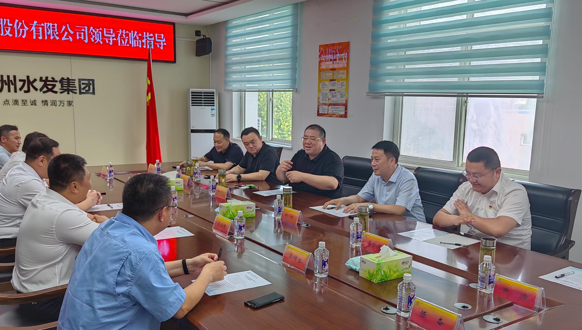 6月11日,東宏集團黨委書記,公司副董事長、總裁倪奉堯,副總裁劉彬、董事孔智勇、董事會秘書尋金龍、菏棗市場總經理彭新華等人前往滕州市水務發展集團開展合作交流會。滕州水發集團黨委書記、董事長李亞峰,黨委副書記、總經理郭偉,滕州水發集團中潤供水公司黨委書記、董事長呂傳生等領導出席會議。