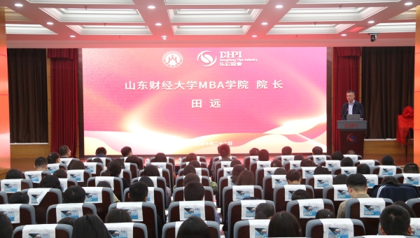 上午10:00活動(dòng)正式開始,上半場議程由東宏管業(yè)職業(yè)技術(shù)學(xué)院副院長鄭軍主持。倪立營在活動(dòng)上發(fā)表致辭,他指出,山東財(cái)經(jīng)大學(xué)和東宏管業(yè)成立MBA教學(xué)實(shí)踐基地,是雙方打通院企合作快車道、打造產(chǎn)教融合共同體的有力舉措和務(wù)實(shí)行動(dòng)。希望以此次揭牌儀式為新起點(diǎn),依托教學(xué)實(shí)踐基地平臺(tái),借助學(xué)院的教育資源,融合公司在國內(nèi)復(fù)合管道行業(yè)首家主板上市企業(yè)的品牌優(yōu)勢和商業(yè)實(shí)踐平臺(tái),深化產(chǎn)教融合,提升MBA學(xué)員培養(yǎng)質(zhì)量,實(shí)現(xiàn)資源共享、優(yōu)勢互補(bǔ),為促進(jìn)經(jīng)濟(jì)社會(huì)發(fā)展全面綠色轉(zhuǎn)型做出新的更大貢獻(xiàn)!