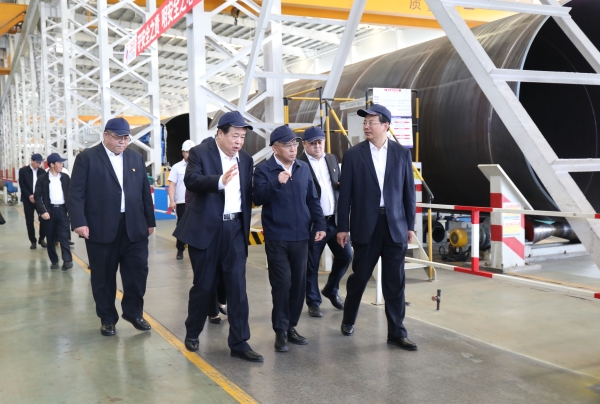 周立偉一行先后參觀了公司智慧展廳、防腐鋼管車間,詳細(xì)了解企業(yè)主題教育開展、生產(chǎn)經(jīng)營(yíng)、科技創(chuàng)新、產(chǎn)品工藝、市場(chǎng)客戶等情況。倪立營(yíng)匯報(bào)了企業(yè)基本情況、智能化車間建設(shè)、國(guó)家重點(diǎn)工程業(yè)績(jī)、安全生產(chǎn)、公司未來(lái)規(guī)劃等情況。