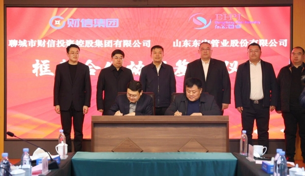 隨后,在各方見證下,徐慧然、倪奉堯代表雙方簽訂《聊城市財信投資控股集團有限公司 山東東宏管業(yè)股份有限公司框架合作協(xié)議》。