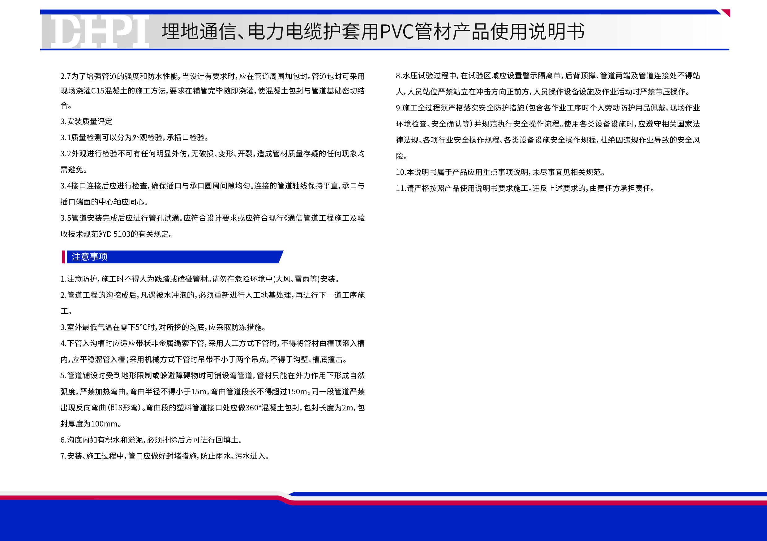 埋地通信、電力電纜護套用PVC管材產(chǎn)品使用說明書