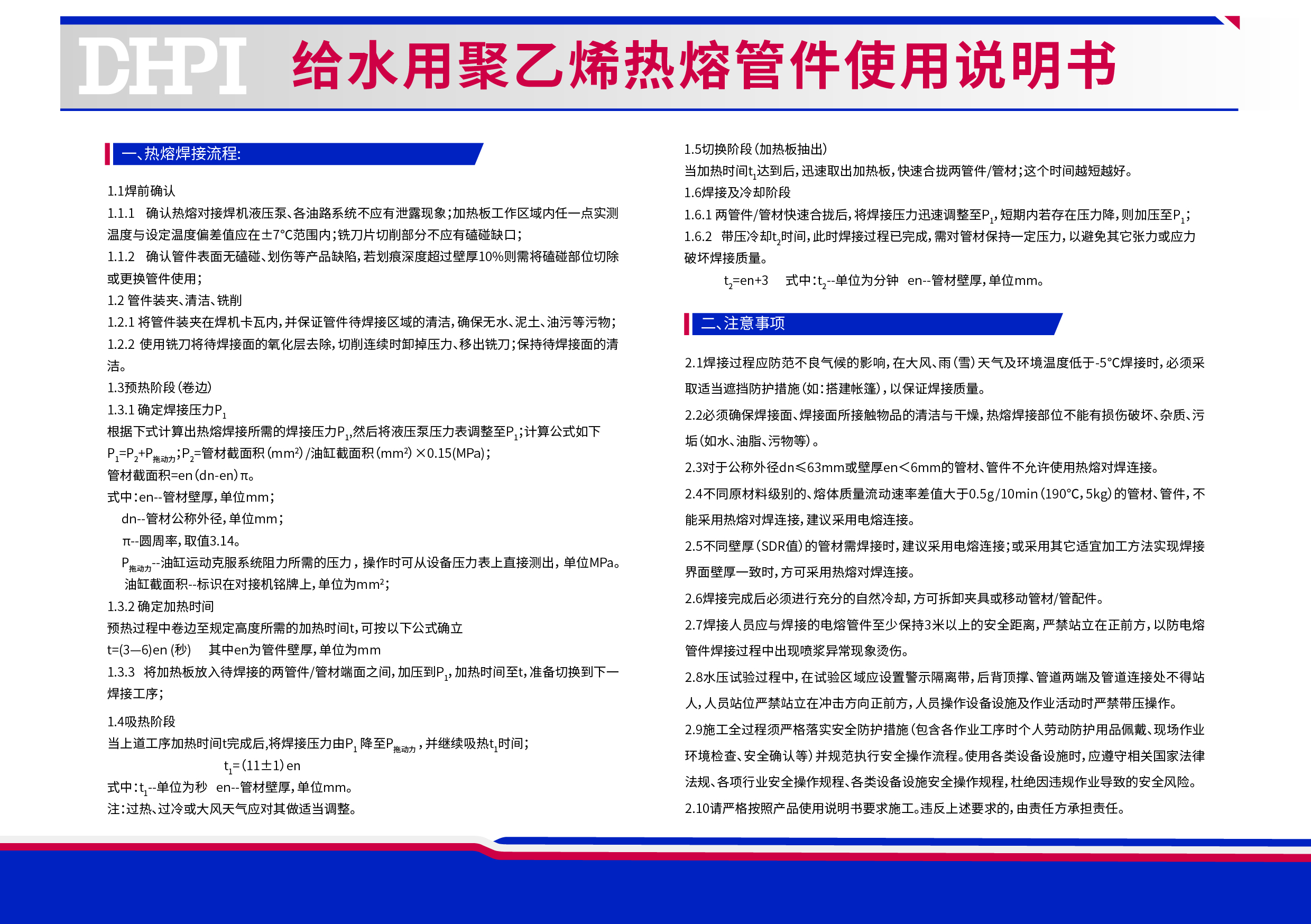 給水用聚乙烯熱熔管件使用說(shuō)明書(shū)