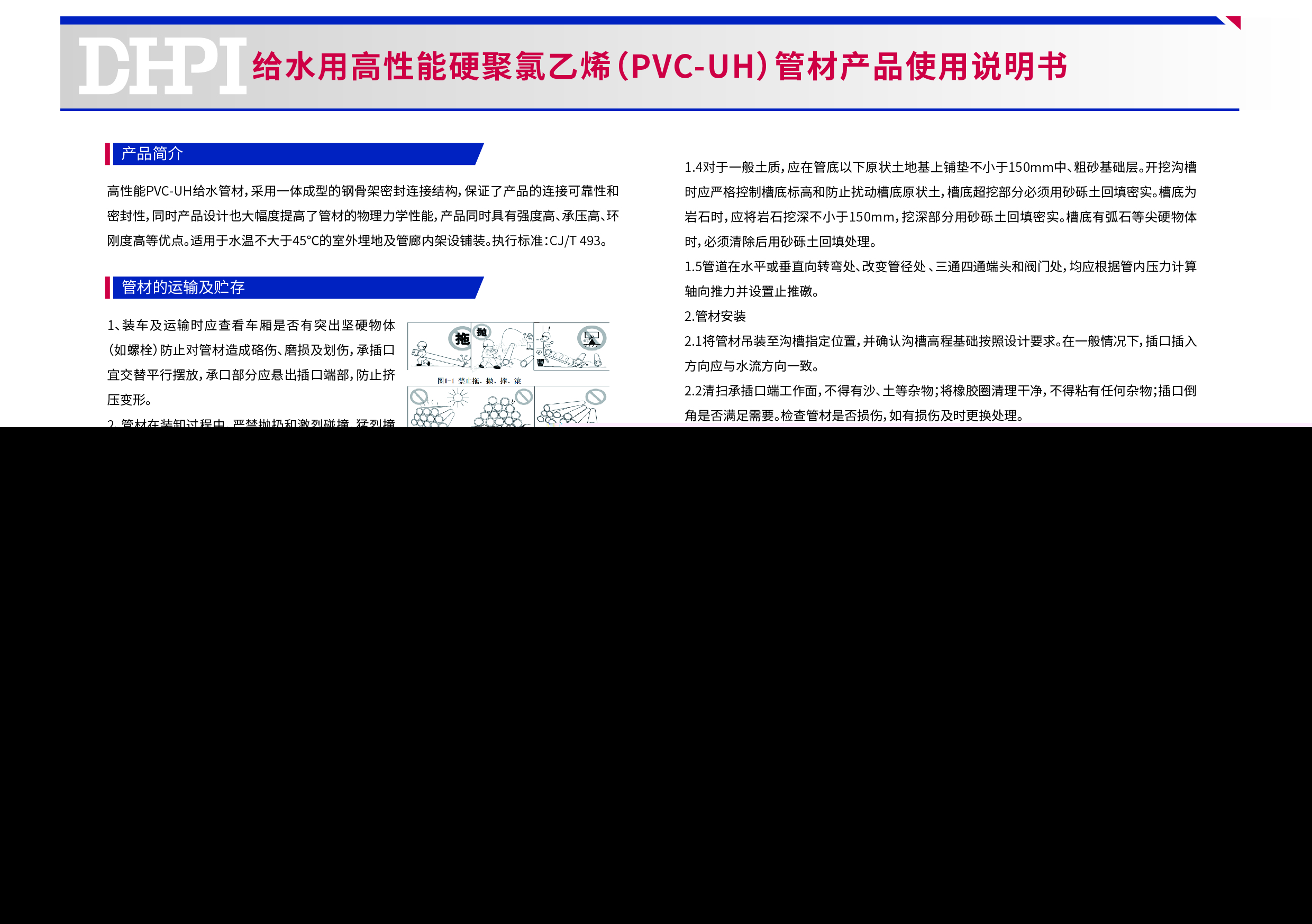 給水用高性能硬聚氯乙烯(PVC-UH)管材產品使用說明書