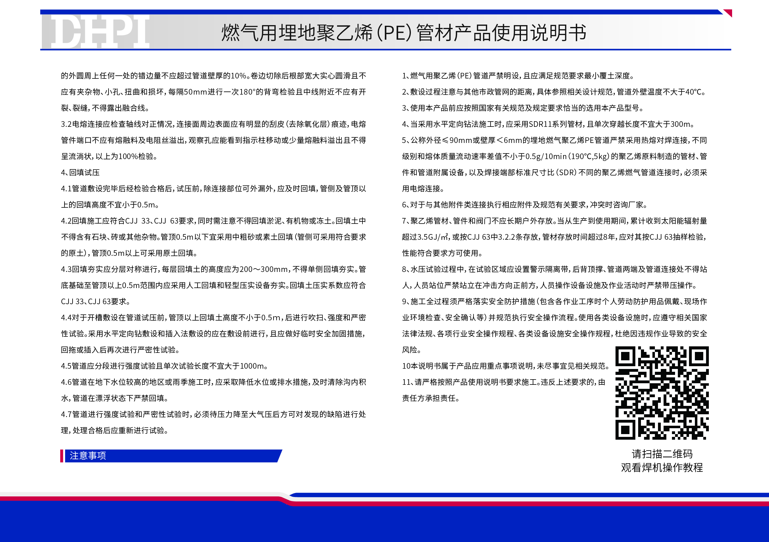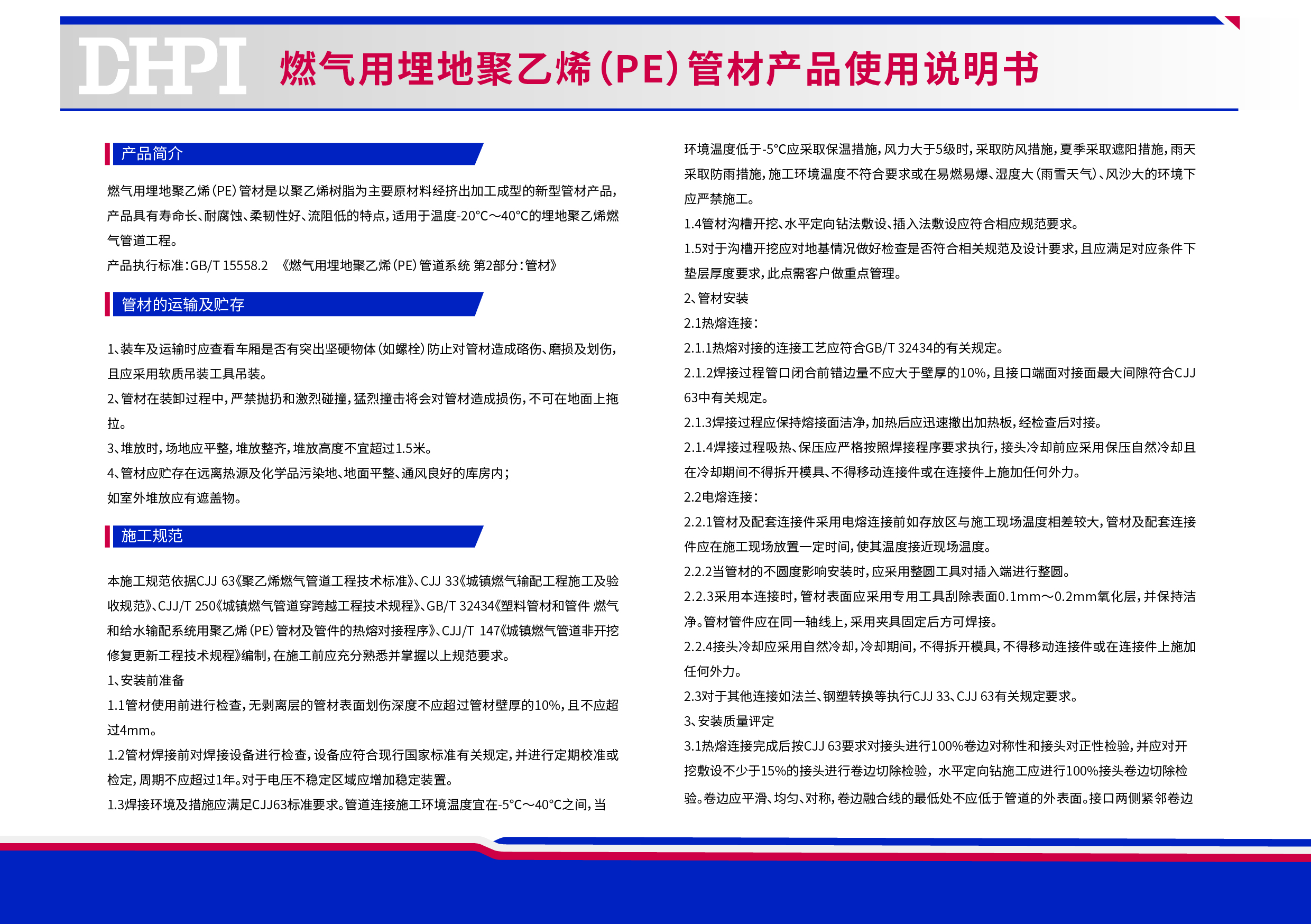 燃氣用埋地聚乙烯(PE)管材產品使用說明書