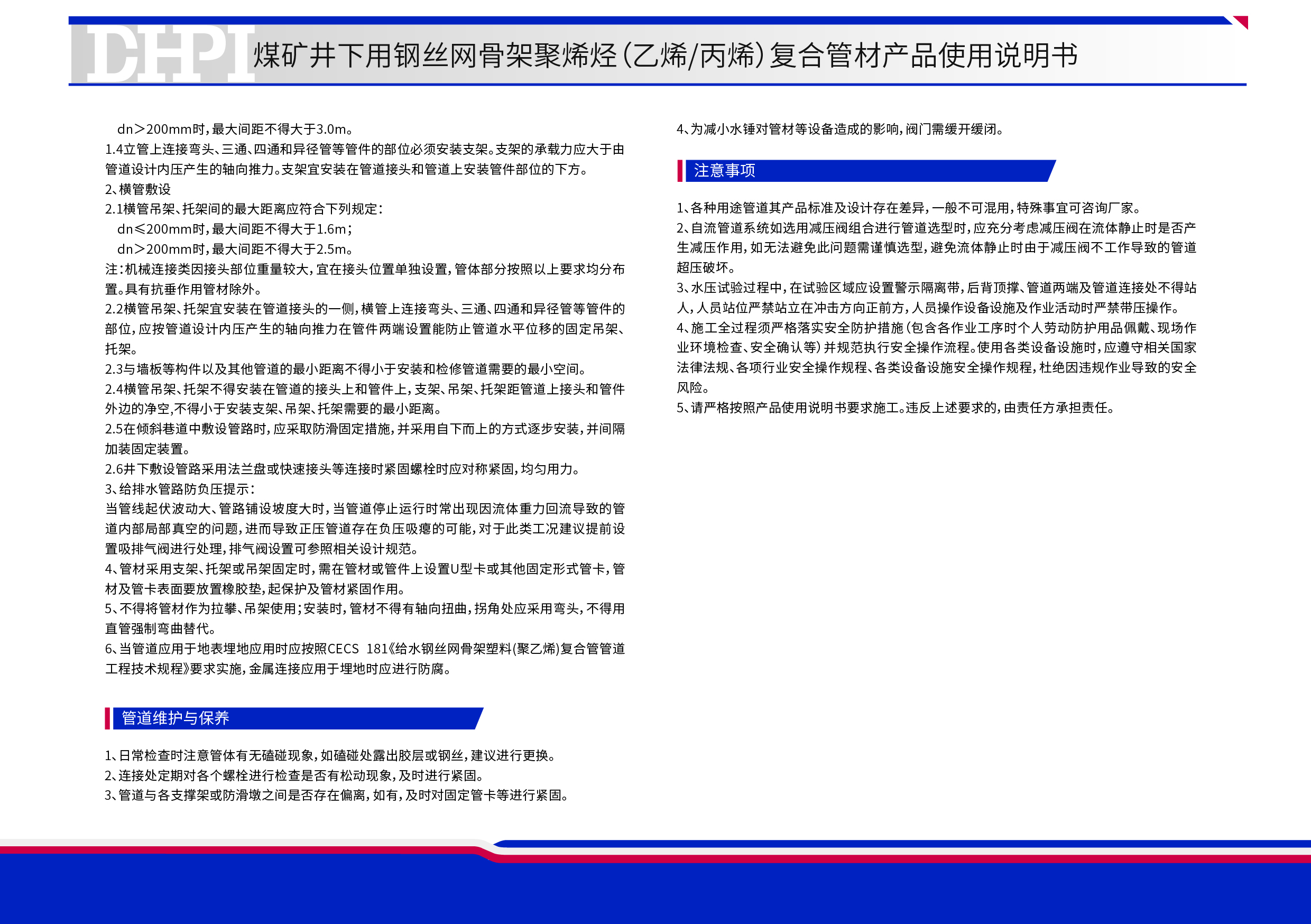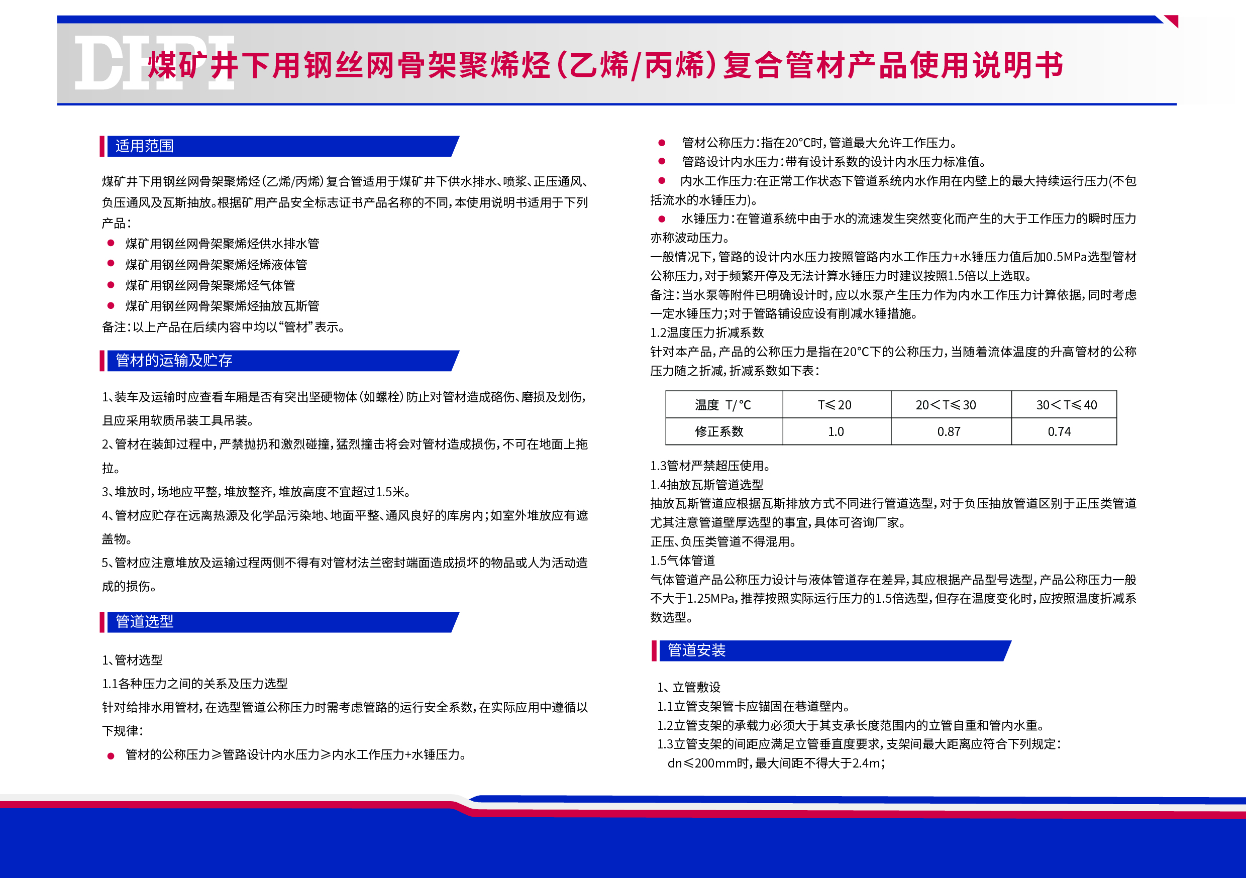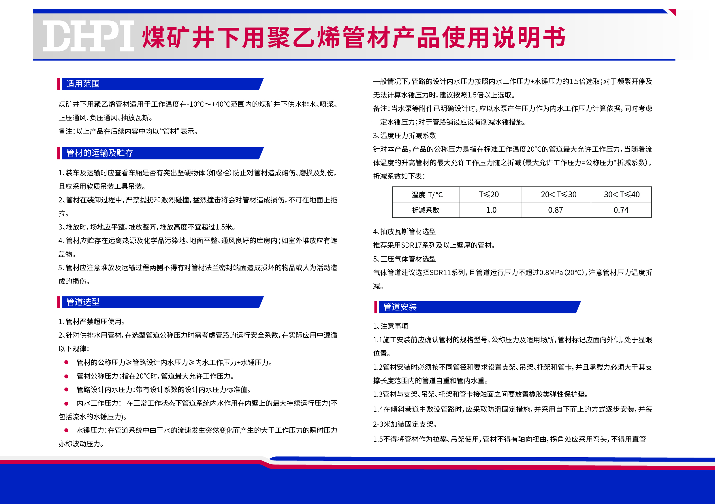 煤礦井下用聚乙烯管材產品使用說明書