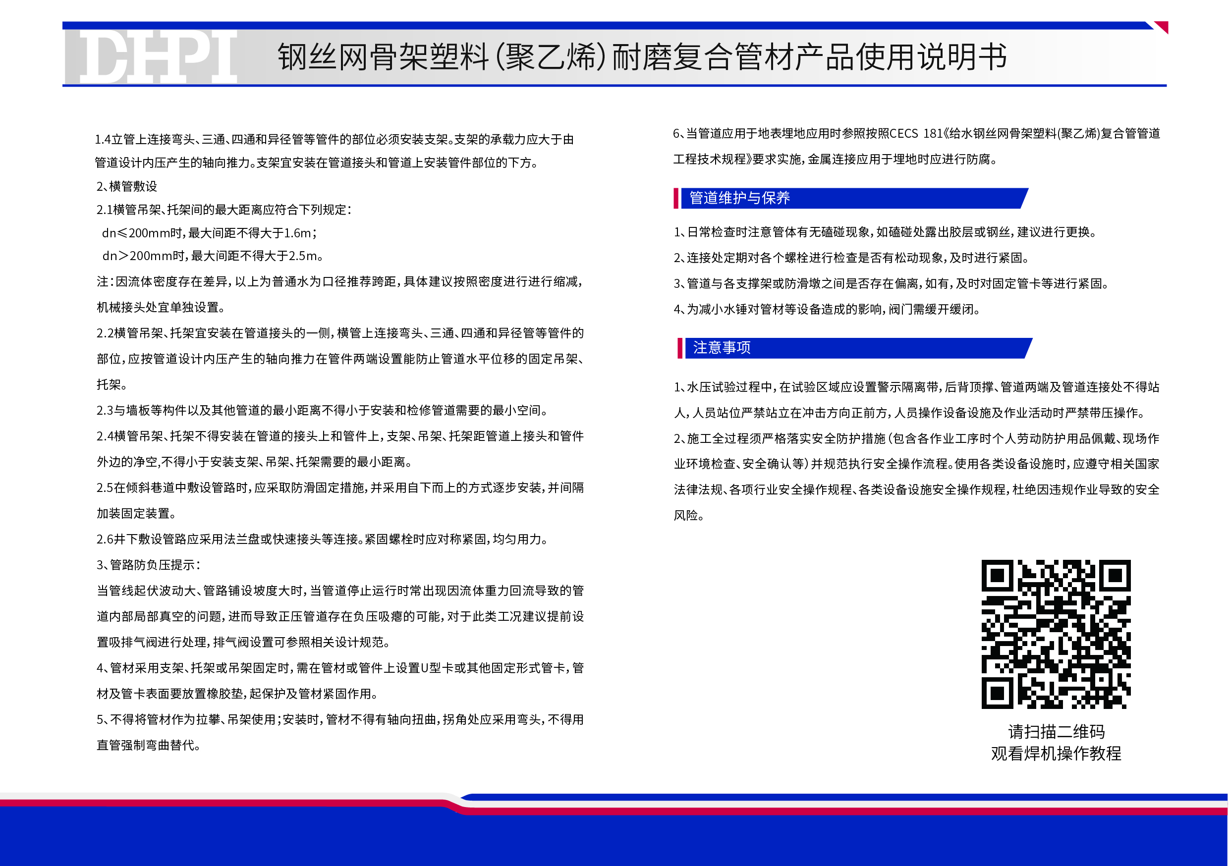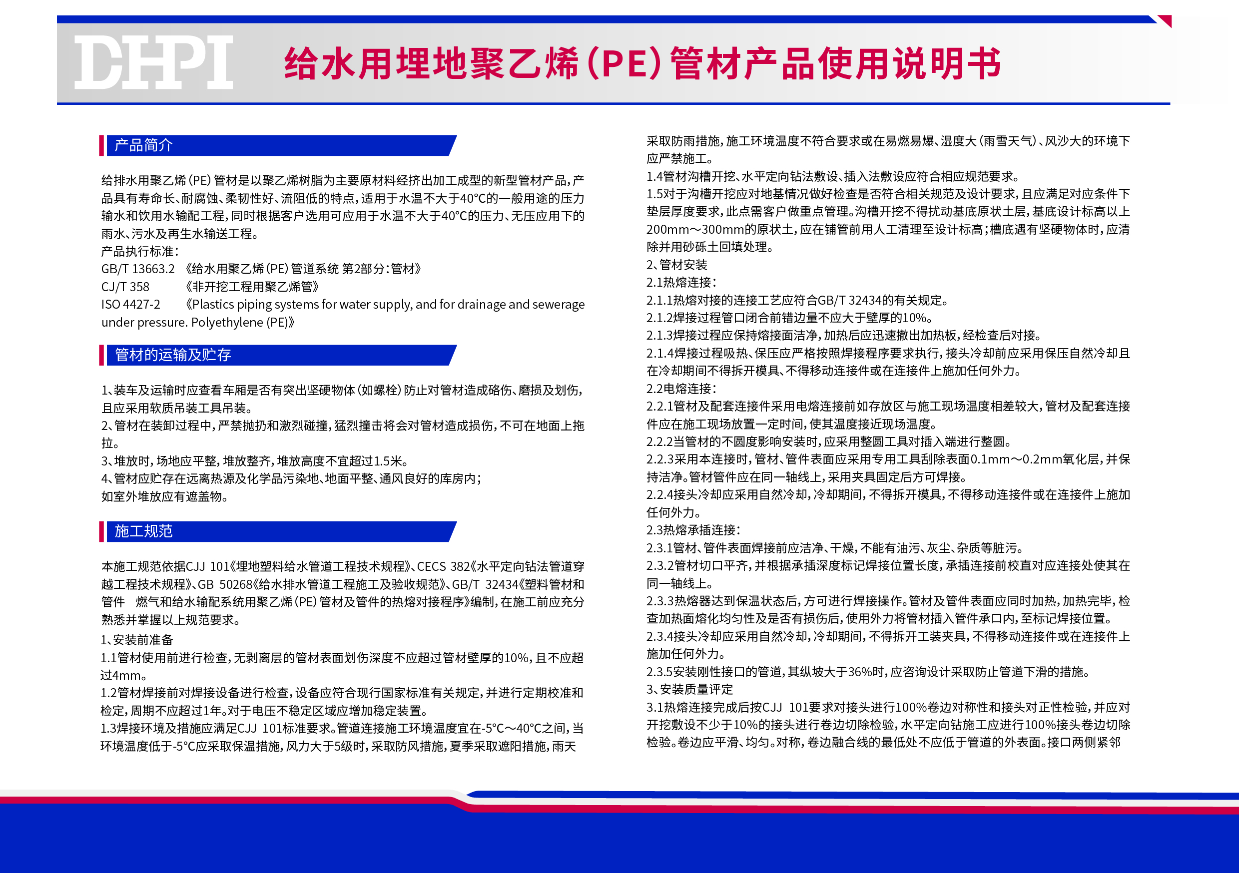 給水用埋地聚乙烯(PE)管材產品使用說明書