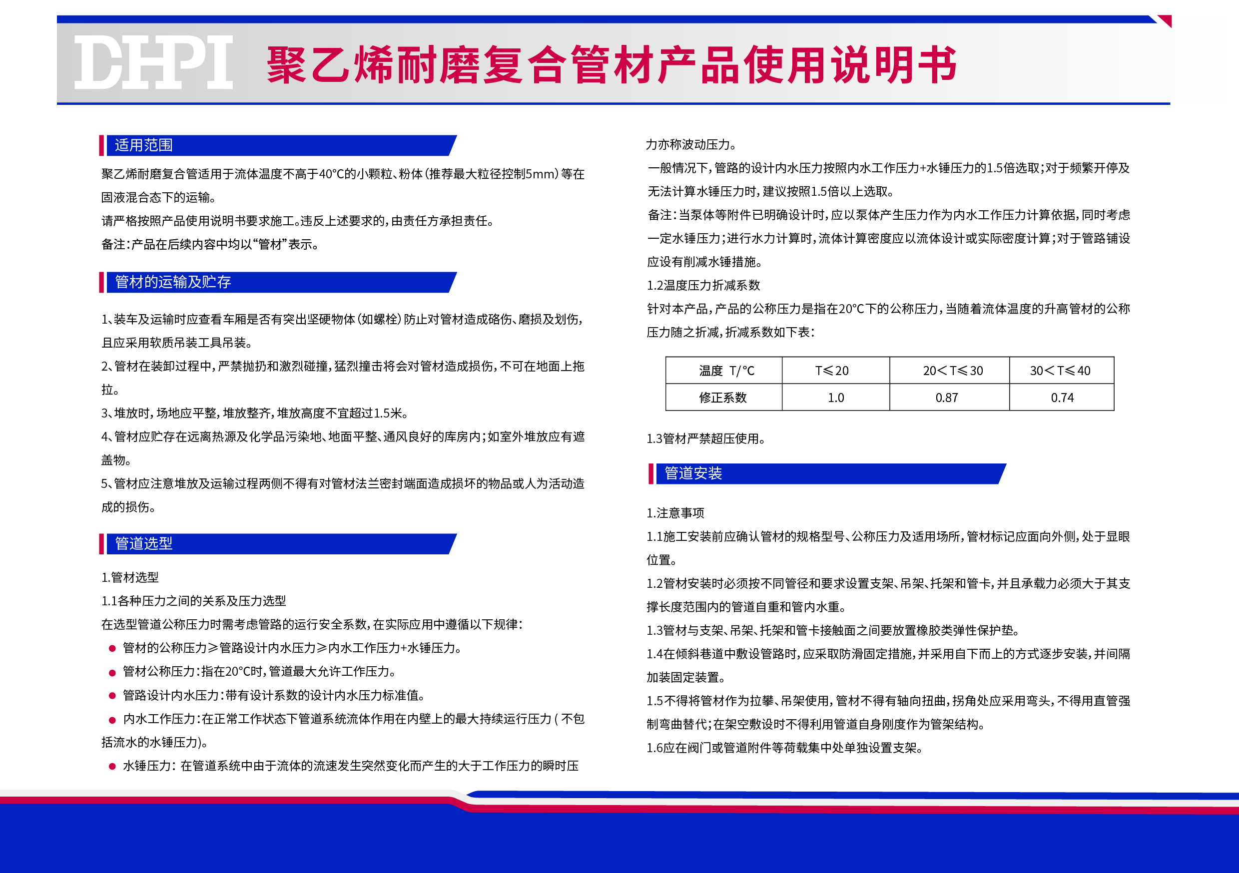 聚乙烯耐磨復合管材產品使用說明書