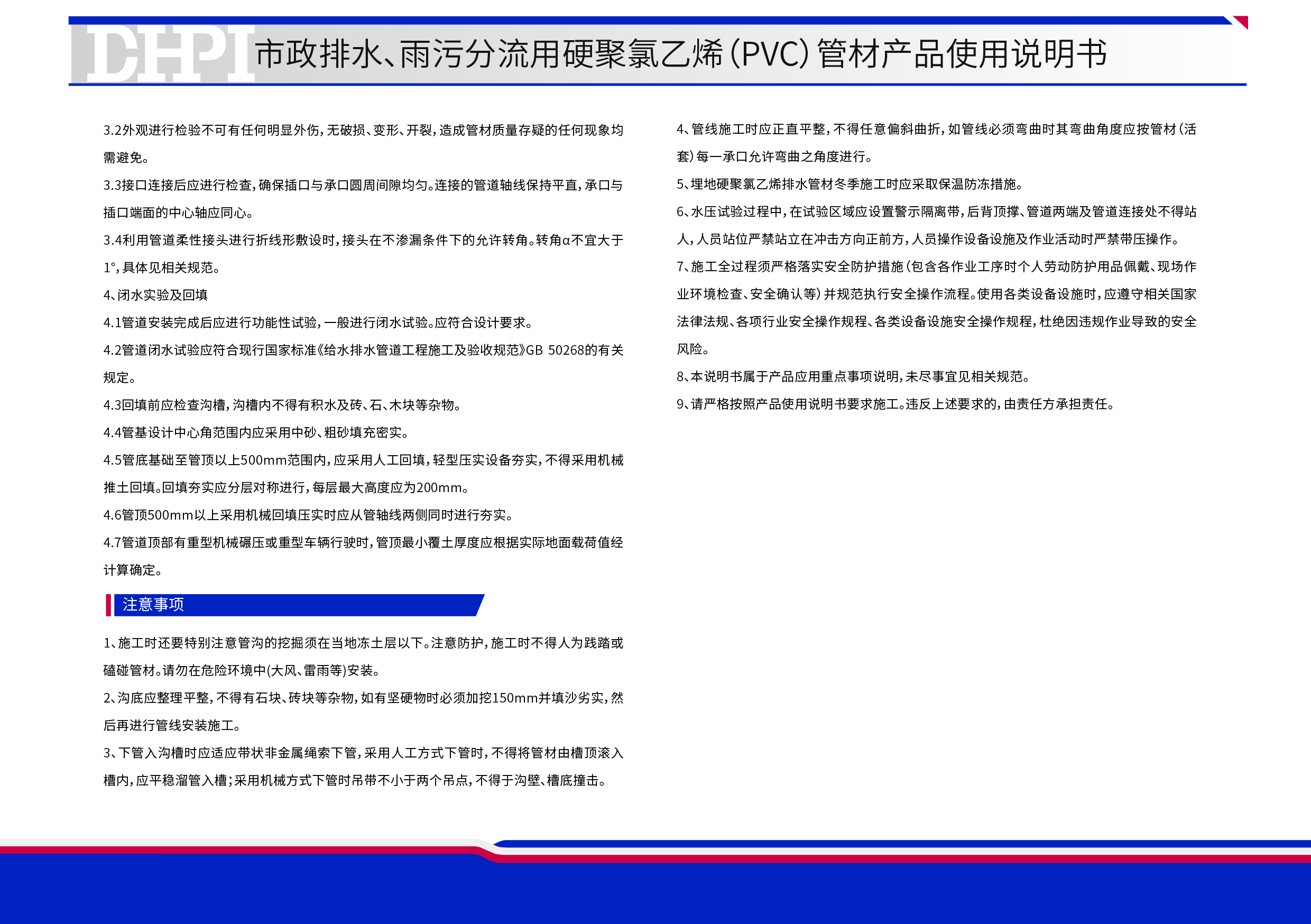 市政排水、雨污分流用硬聚氯乙烯(PVC)管材產品使用說明書